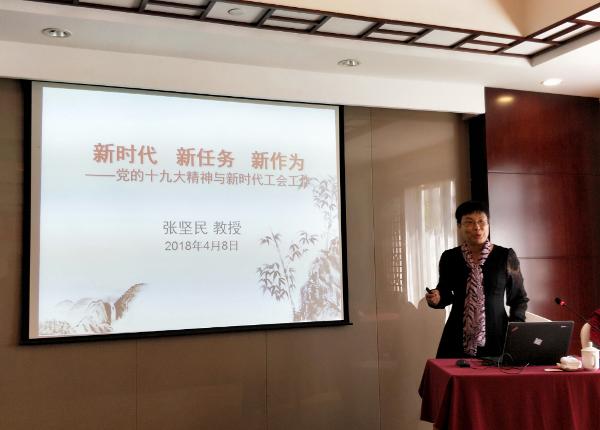 第一天培訓(xùn)由浙江省總工會(huì)干部學(xué)校、省職業(yè)培訓(xùn)學(xué)校教授、浙江大學(xué)客座教授張堅(jiān)民作題為“新時(shí)代 新任務(wù) 新作為”的講座。張堅(jiān)民通過(guò)栩栩如生、原汁原味的解讀,讓大家對(duì)于中央黨的工會(huì)工作會(huì)議的背景、主要內(nèi)容、市委推進(jìn)工會(huì)工作改革的基本情況及《市總工會(huì)工會(huì)工作實(shí)施細(xì)則》主要內(nèi)容等有了全面深入的認(rèn)識(shí),在知識(shí)和思想層面得到了一定的提高。