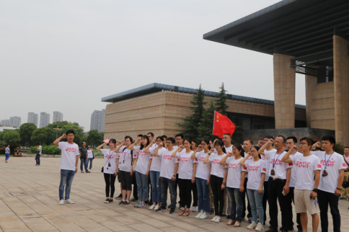 在紀念館門口入黨誓詞墻前,全體黨員莊嚴宣誓,這鏗鏘有力的宣誓聲響徹天空,抒發(fā)著黨員們對黨的熱愛與忠誠。